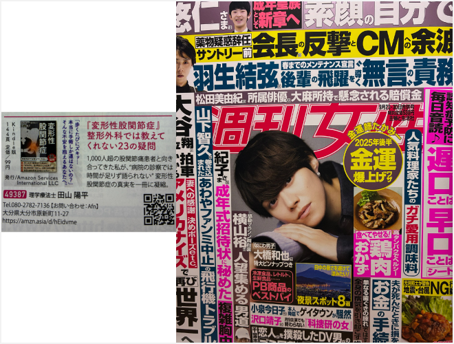 週刊女性に「変形性股関節症 整形外科では教えてくれない23の疑問」が紹介されました。